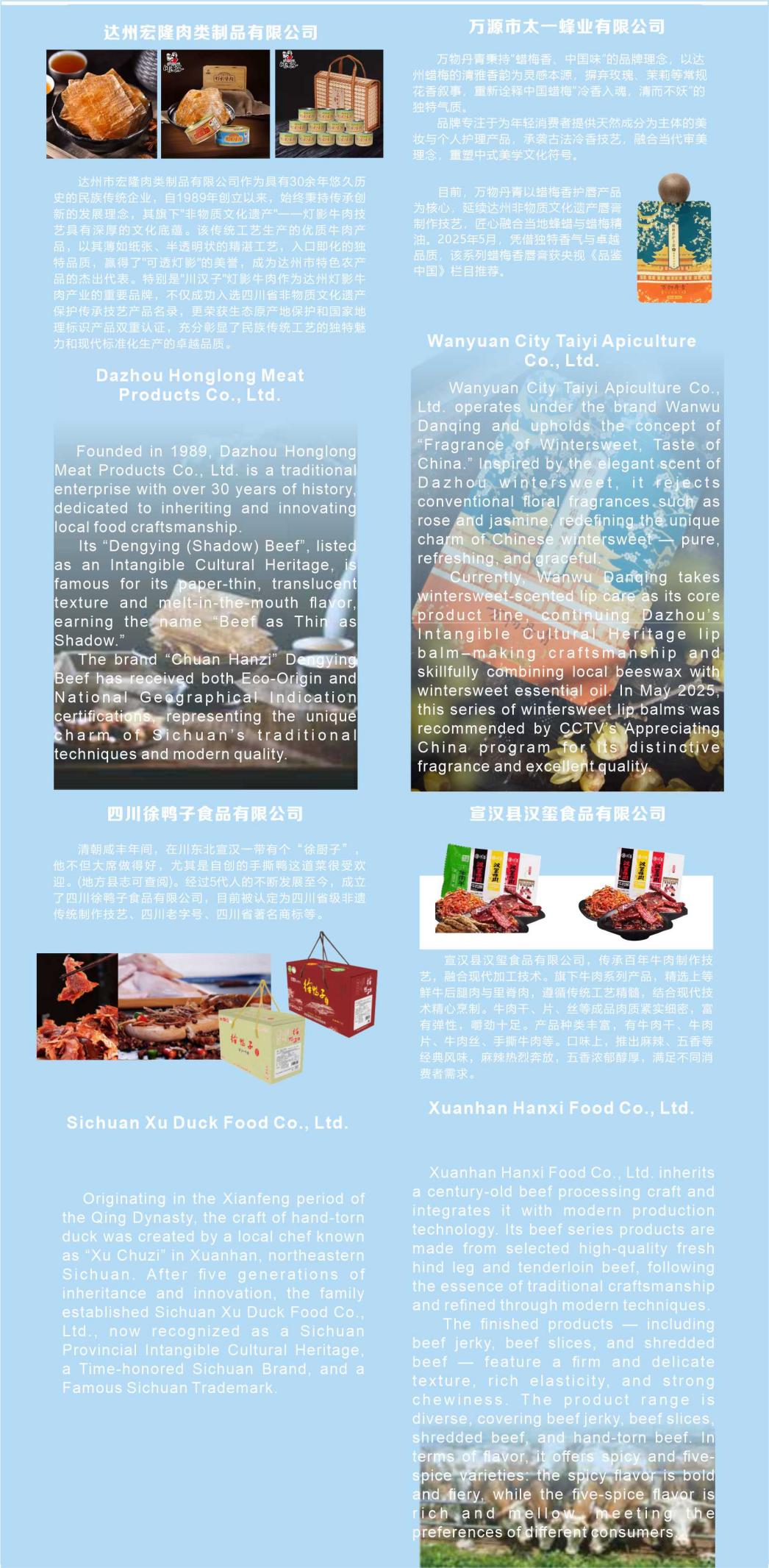 Treasures nurtured by the morning dew of Daba Mountain and crafted with dedication by the clear waters of Zhouhe River – the featured products from Dazhou, Sichuan, are crossing mountains and seas to meet friends in Southeast Asia. This city in the heart of Bashu (the ancient name for Sichuan and Chongqing) boasts a range of fine products such as Dengying Beef and Wanyuan Selenium-Enriched Tea, which carry the natural purity and humanistic warmth, with each item embodying the perseverance of people in eastern Sichuan.