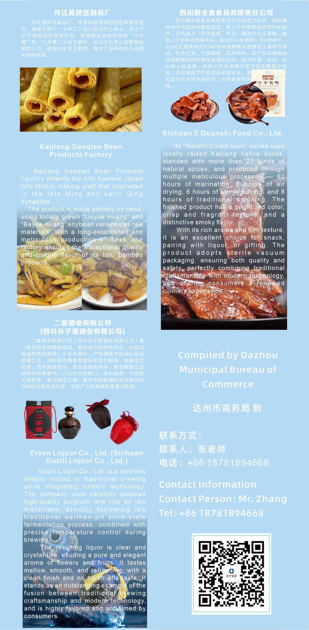 Southeast Asia and China are geographically close and share compatible tastes. The pursuit of natural and healthy high-quality products here highly aligns with Dazhou's philosophy of "building reputation with quality". This special brochure for "Dazhou Products Going Global, Shared Worldwide" serves as a bridge connecting the two sides. Open it, savor the flavors of eastern Sichuan, and embark on a quality journey across mountains and seas.