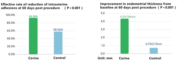 The registration study results of Corinahave demonstrated statistically significant and clinically meaningful reduction in intrauterine adhesion at 60 days post procedure,compared to standard-of-care therapy. Corina has also shown meaningful improvement in endometrial thickness from baseline at 60 days post procedure,compared to standard-of-care therapy.