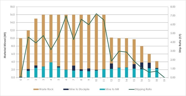 The Company's PEA mining strategy has adopted both open-pit and underground mining methods and was designed to gain earlier underground access to the high-grade Nova Zone in the northeast area of the CV5 Pegmatite than would be possible with just open pit mining. This approach has the potential to reduce the Project's operational footprint,potentially simplifying the approval process by decreasing the open pits strip ratio and therefore minimizing waste deposition at surface. The open pit strip ratio during the proposed PEA LOM scenario is estimated to be a low 3.7:1.