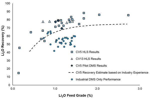 Process plant feed rate following Stage 2 expansion at an average of ~4.5 Mtpa11via simple DMS-only process; average LOM lithia recovery of 69.5%; spodumene concentrate grade at 5.5% Li2O.
