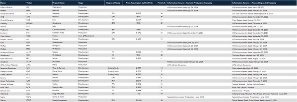 Lithium raw material production is increasing as new projects come online and established producers expand,resulting in ample supply (Fastmarkets 2024).