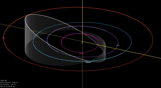 2025 OW is a very predictable space rock,with officials able to estimate its orbit path for the next 100 years (Picture: NASA)