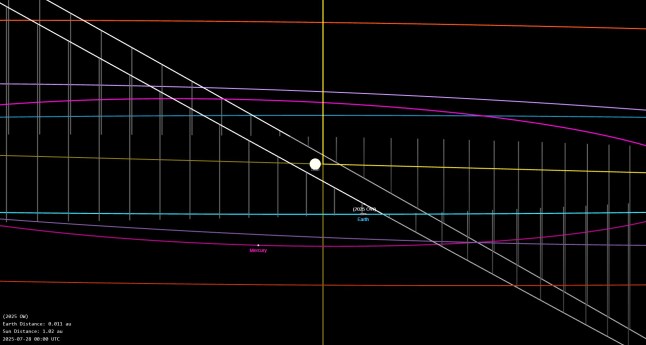 The space agency’s Asteroid Watch Dashboard says that 2025 OK1,which is estimated to be about 100 feet across,will fly past us today at a distance of 1,360,000 miles.